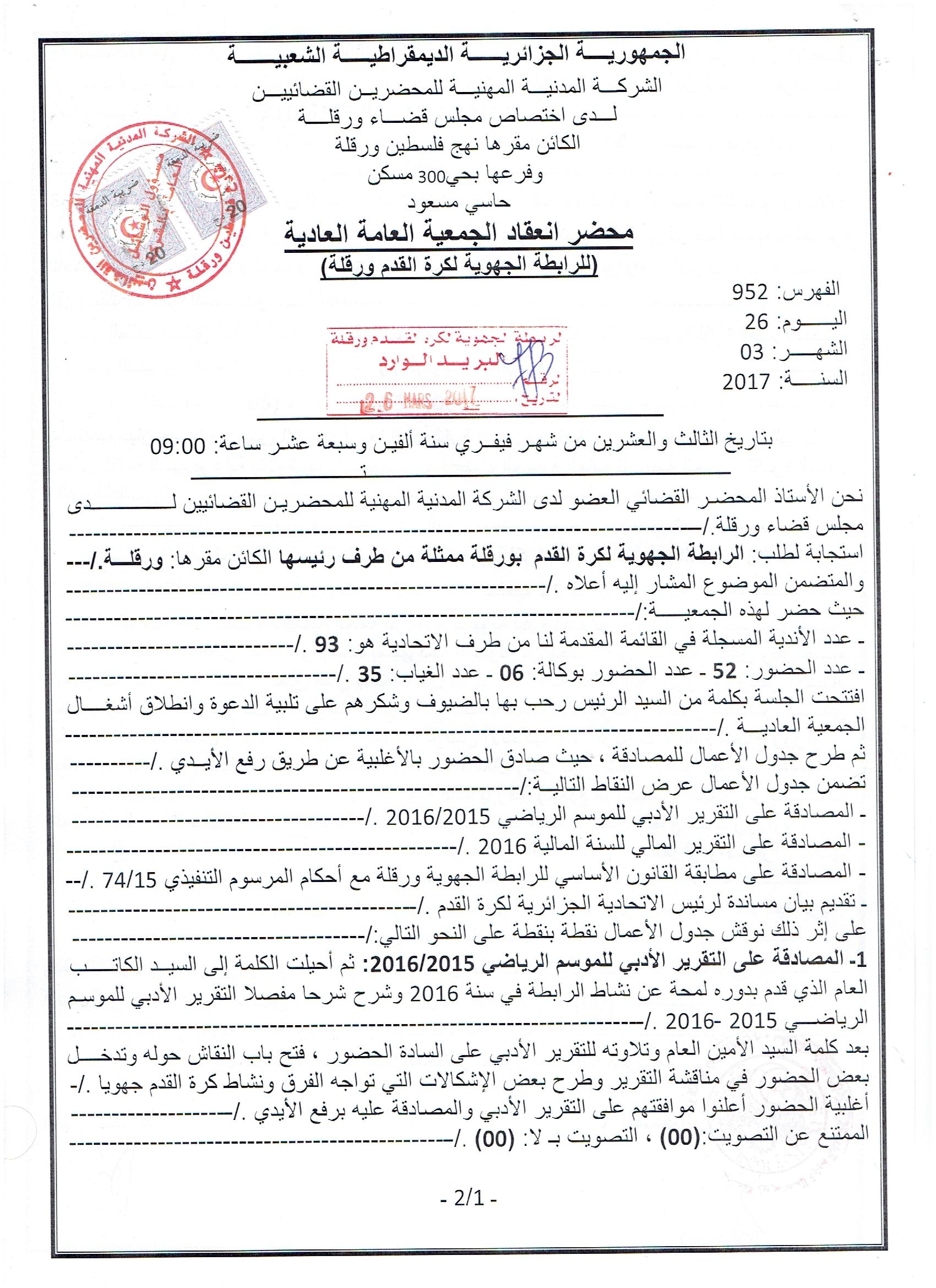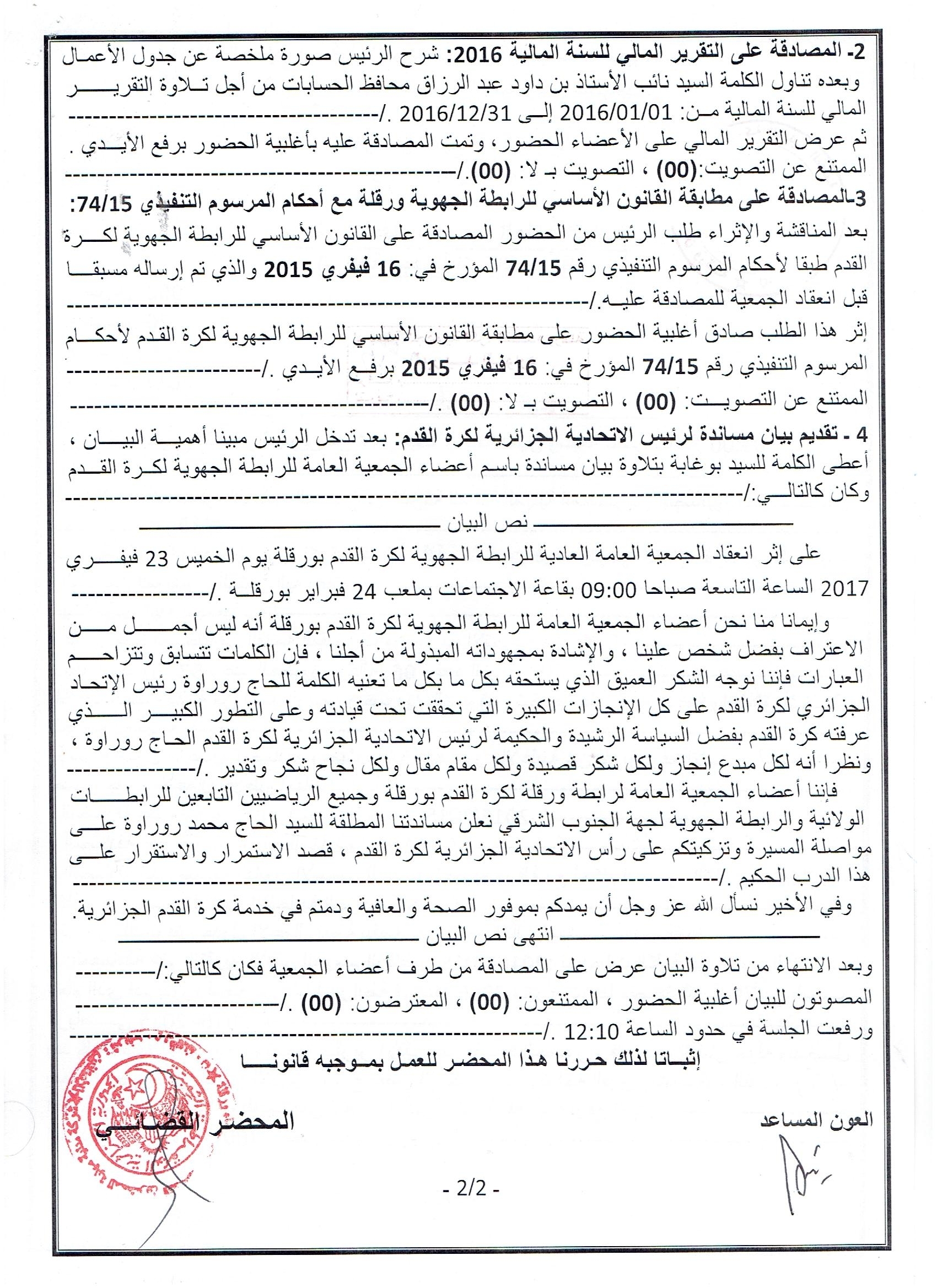 محضر الجمعية العامة العادية 23 فيفري 2017