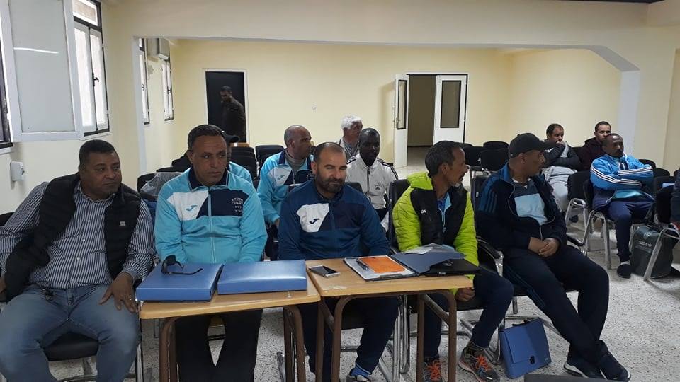 أشرف صبيحة اليوم السيد علي باعمر رئيس الرابطة على افتتاح تربص المدربين DFE3 التجمع الثاني بقاعة الملعب البلدي 24 فبراير ورقلة بحضور السادة اعضاء المديرية الفنية الجهوية والمتربصين.