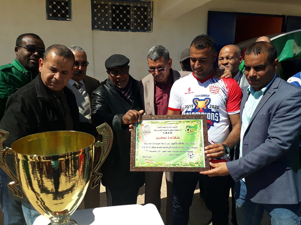 وقد سلم درع البطل السيد حسين بن ختو نائب رئيس الرابطة، وذلك بحضور السيد عبد الرزاق بن عريف رئيس مصلحة الرياضة بمديرية الشباب والرياضة لولاية ورقلة.