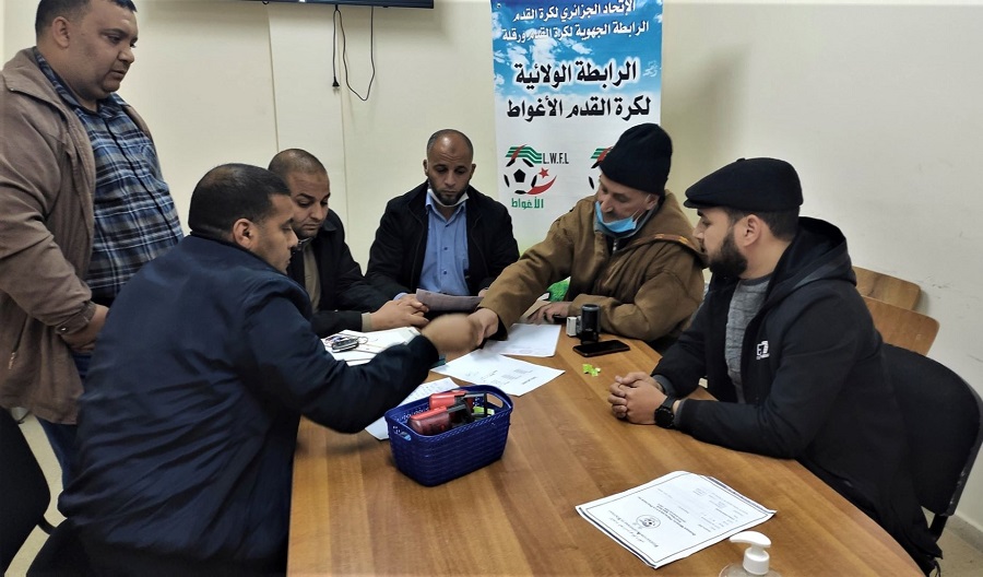 تم أمسية يوم الأحد 2021/01/03 تسليم واستلام المهام بين الرئيس السابق للرابطة الولائية لكرة القدم الأغواط السيد حبيب جنيدي والرئيس الحالي السيد أحمد خرشي بحضور المحضر القضائي وكل من الأمين العام السيد أسامة التخي والمدير الفني السيد ابراهيم ميهوبي ورئيس لجنة الجرد السيد زعنوني عبد الحميد والمحاسب السيد مزوزي عيسى