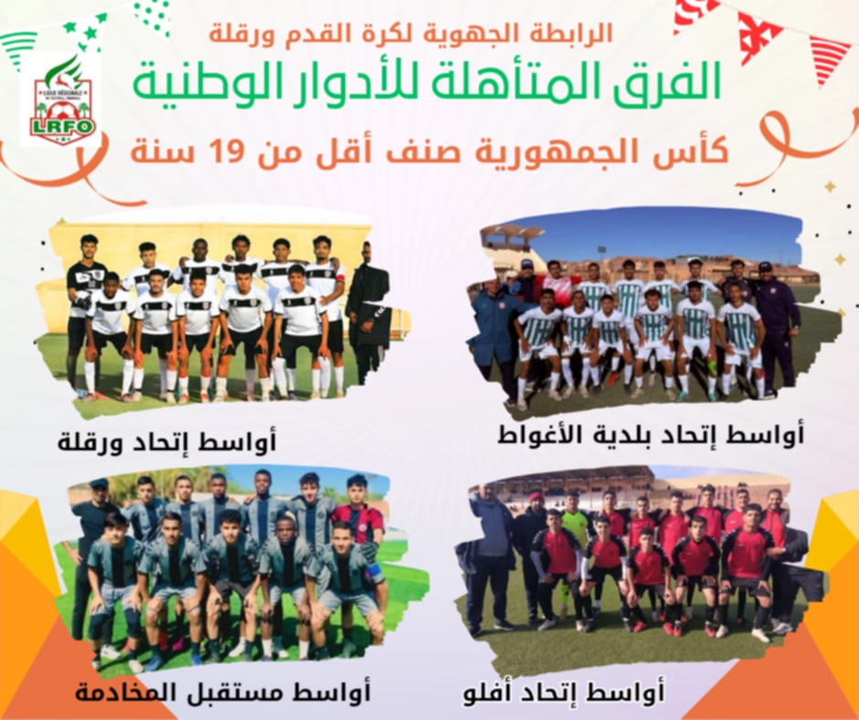 بتقدم السيد محمد يحي بن ساسي رئيس الرابطة بتهانيه الخالصة إلى الفرق المتأهلة الى الأدوار الوطنية من منافسة كأس الجمهورية متمنيا لهم النجاح و تمثيل الجهة احسن تمثيل